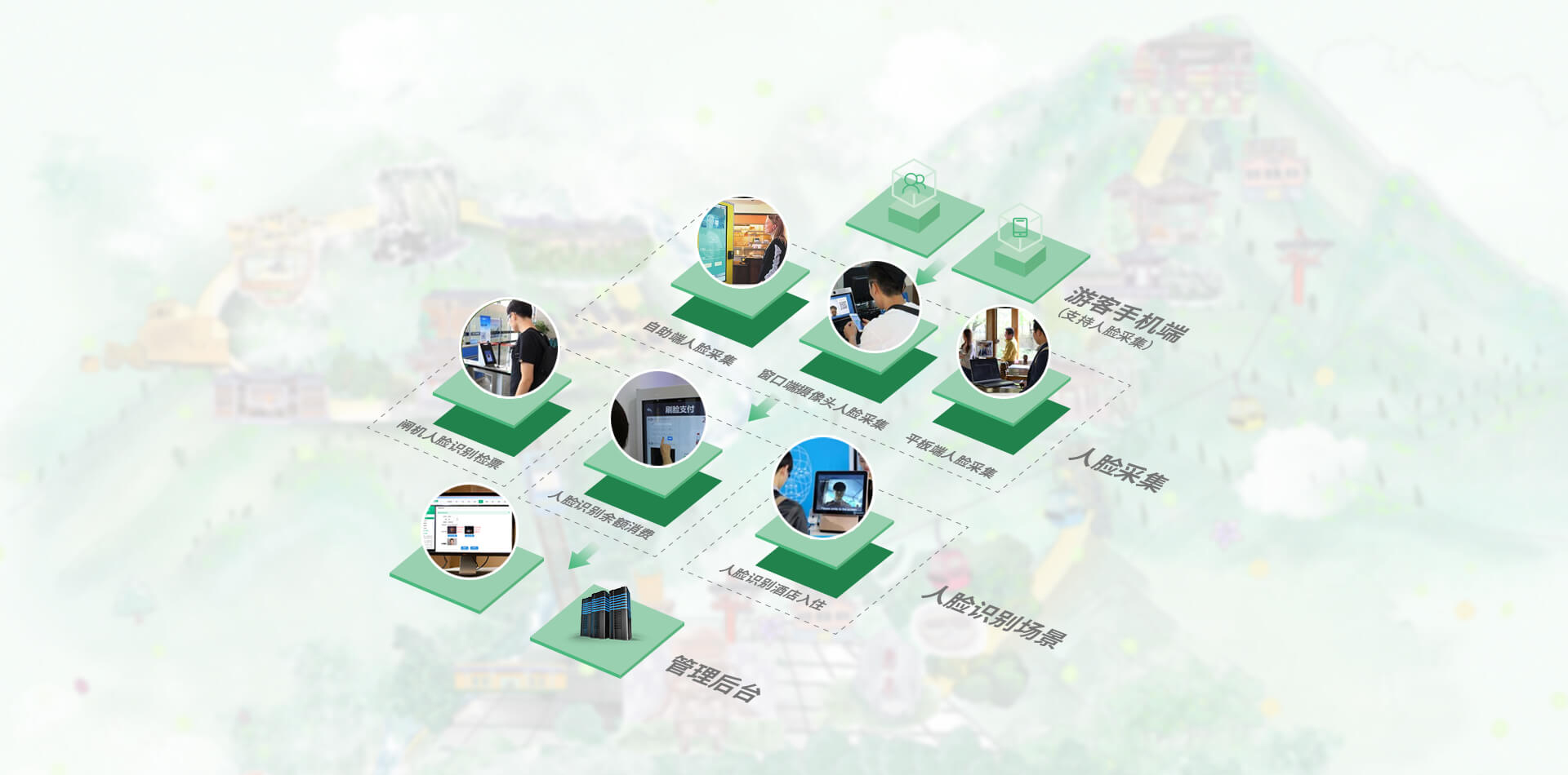將人臉識別設備與景區通道閘結合,主要用于游客購買年票或景區套票時,再也不用擔心忘記帶相關證件或是丟失門票,只需要購買時錄入人臉, 以后再出入景區時,“刷臉”就可以自由方便出入景區。提升用戶驗票體驗與效率的同時,增強景區管理效率。